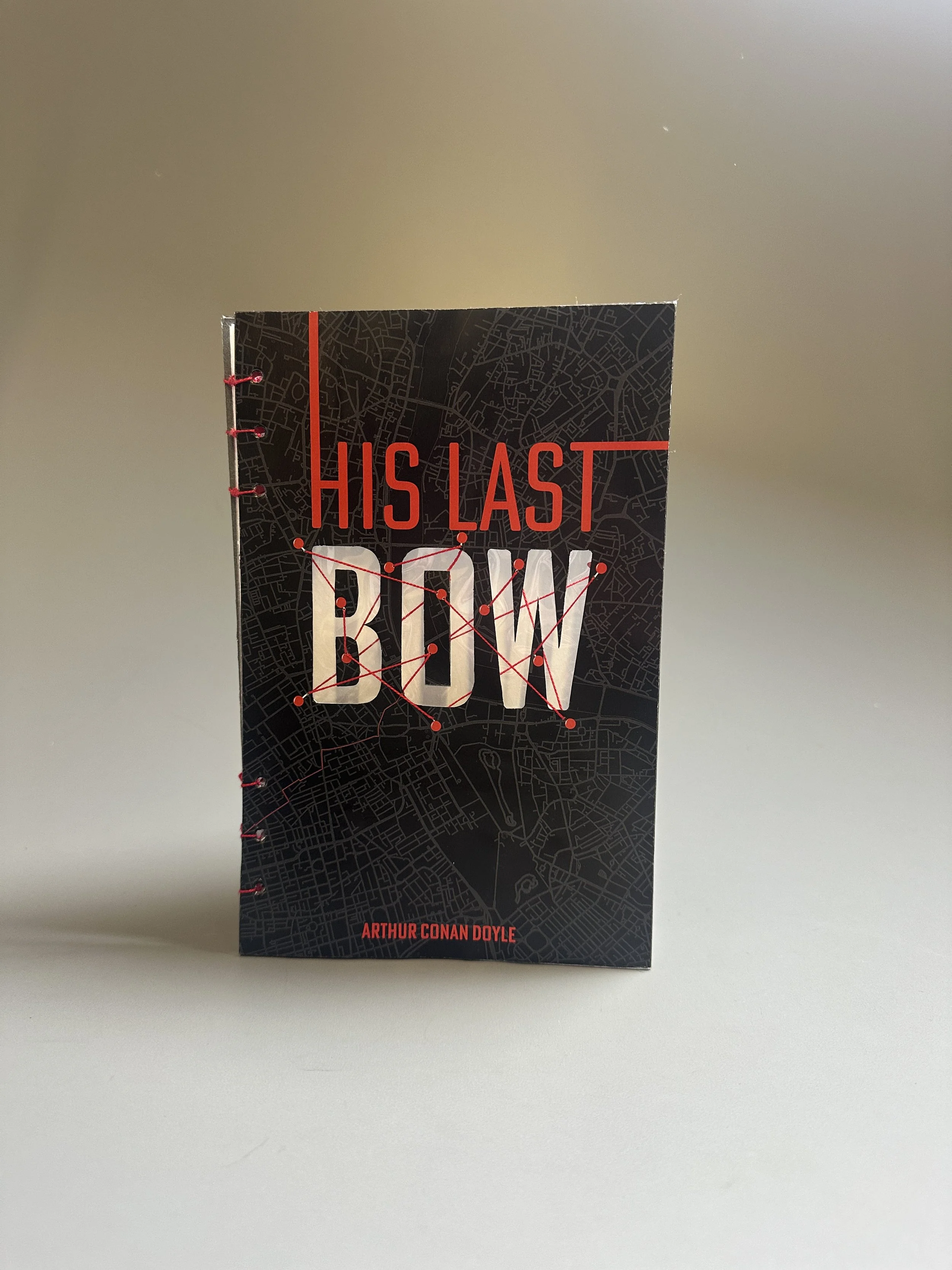For this typography project, I designed a cover and page layout for His Last Bow, a Sherlock Holmes short story. This type-driven cover captures the mystery and suspense of the story, using a map background and red thread details to hint at the unfolding clues. Inside, I kept the layout simple, using a single red line to subtly guide the reader through the story without distracting from the text.